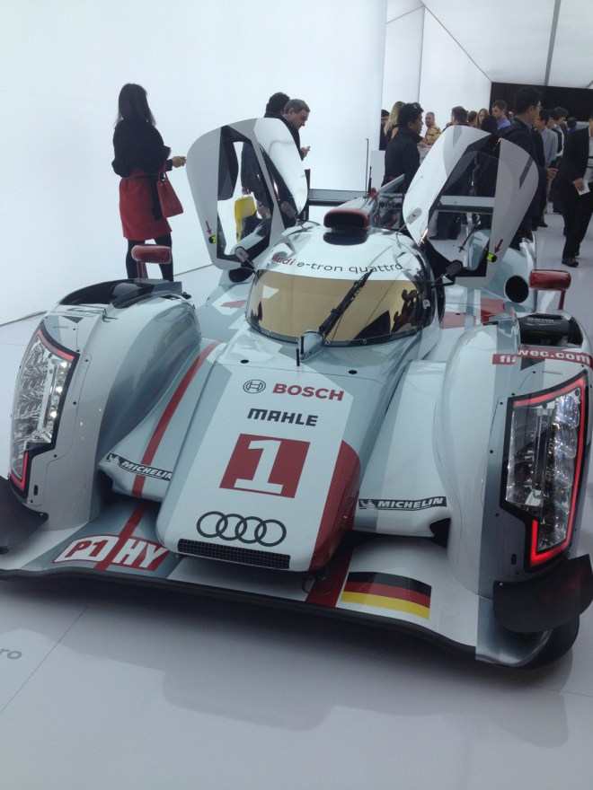 Audi e-tron race car: electric/diesel fueled.