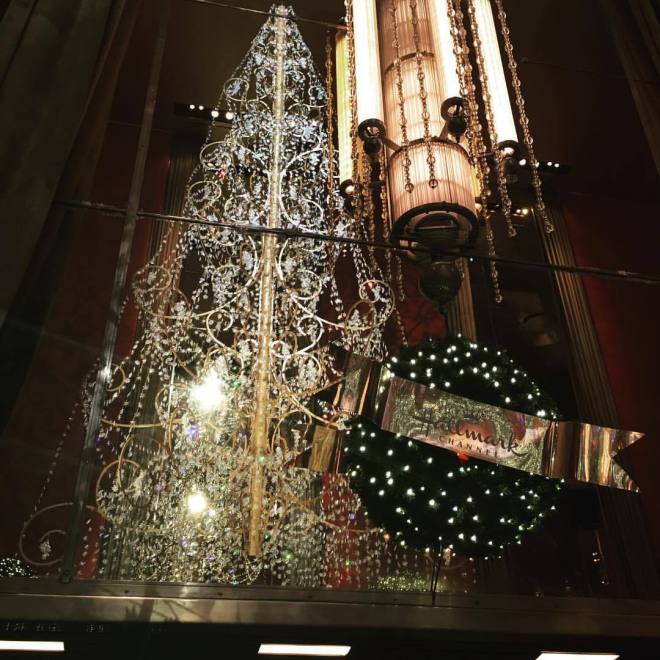 Reflection of the great chandelier at #radiocitymusichall #christmastime #christmasspectacular