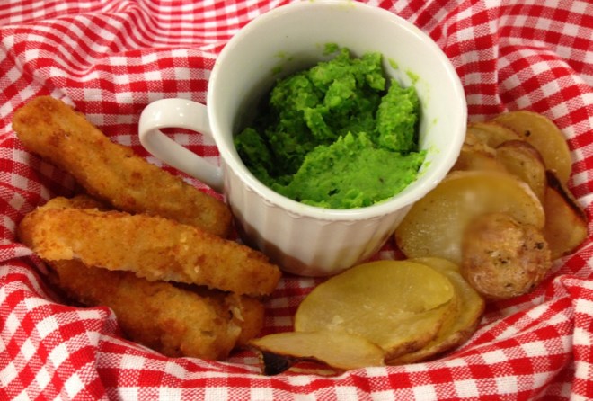 Home sweet home tonight with fish and homemade chips, tartar & mashed peas. Delish for a cold NY winter night…
