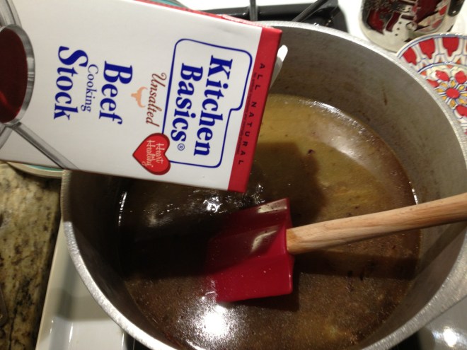 Add 64 oz beef stock, 1 cup dry white with seasoning. While cooking, slice baguette and toast…