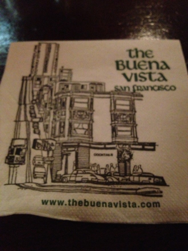 Oh to be reunited with Buena Vista. Tucked away in my heart is my first visit with T- dating & madly in love on our first trip. The views then & now are perfect. The second visit was with my BIL B and his then girlfriend (now wife). Many of these Irish Coffees consumed. Tonight I toast those memories and the future visits with T sharing one of our favorite cities with N & I.