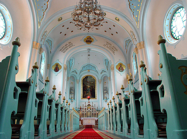 Inside architecture at The Blue Church in Bratislava, Slovakia (by earthmagnified).